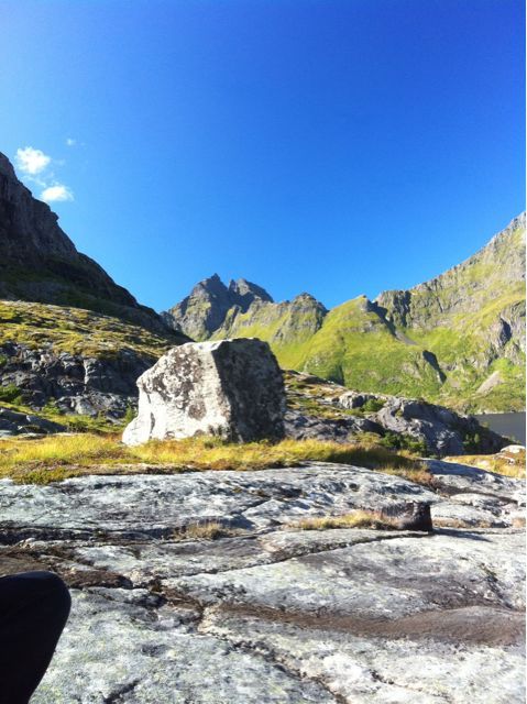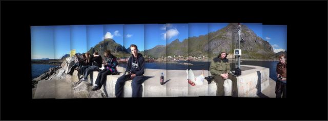 Tidligere på dagen tok vi en tur ut på moloen i Å, og med en applikasjon på telefonen hvor jeg sveiper kameraet over landskapet så fester den mange eksponeringer sammen til et panoramabilde: