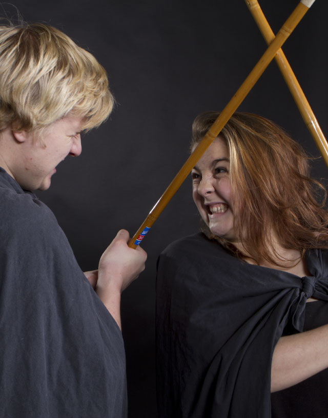 Første bildet er slik jeg tok det i studio, og det under, ja gjett hva, det er faktisk det redigerte. Anders Huke til venstre som en sith, og Pernille Tømte til høyre som jedi. Må takke spesielt Pernille for utmerket innlevelse, og ja, jeg innser vel at jeg burde switchet fargene på sverdene deres, men – bagateller… pytt sann