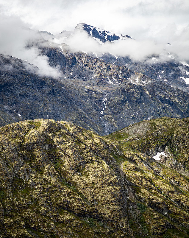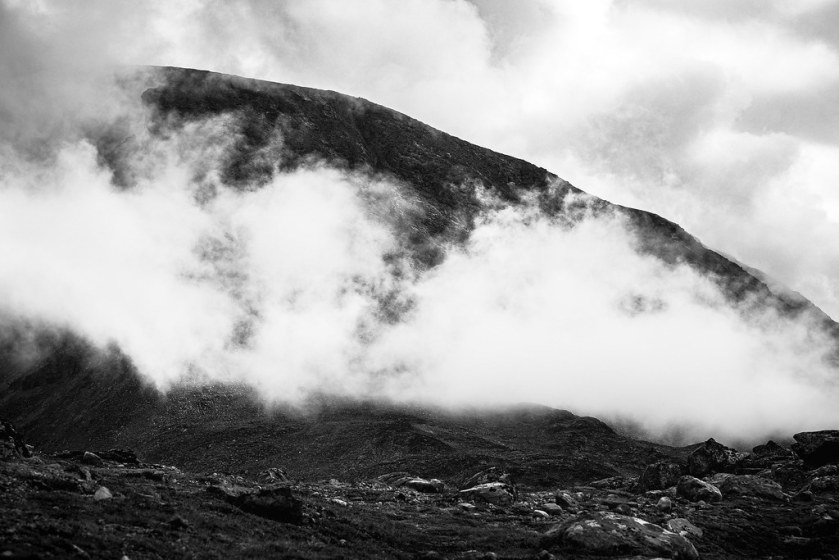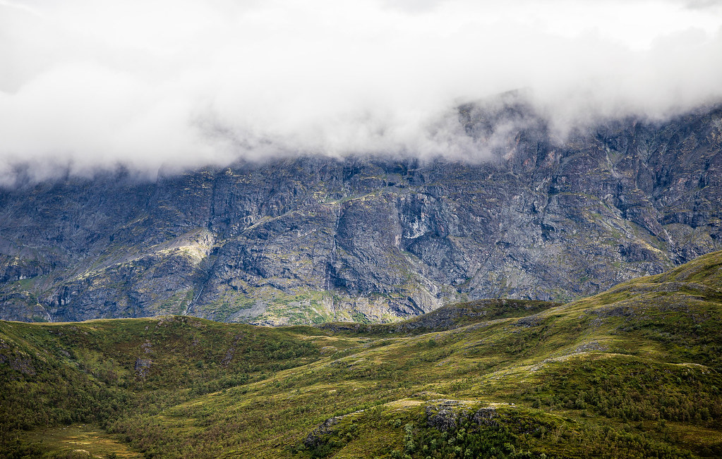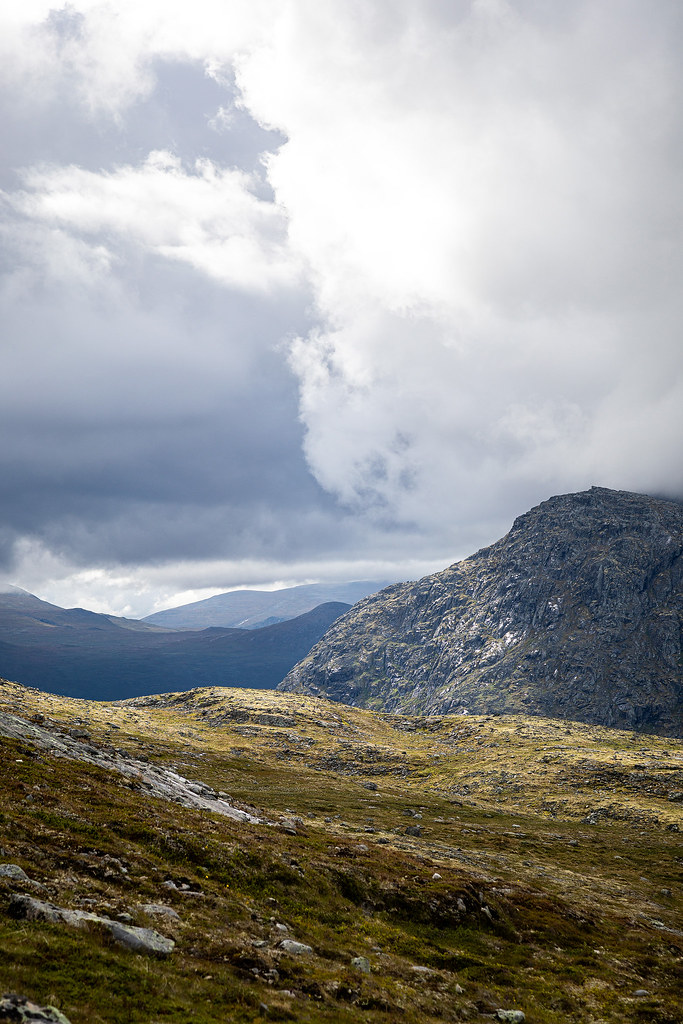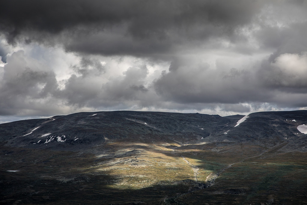 Over the top Veslfjellet – and across Bandet, the clouds were returning. In a brief moment I captured the effect a “hole in the sky” had on the mountains:
