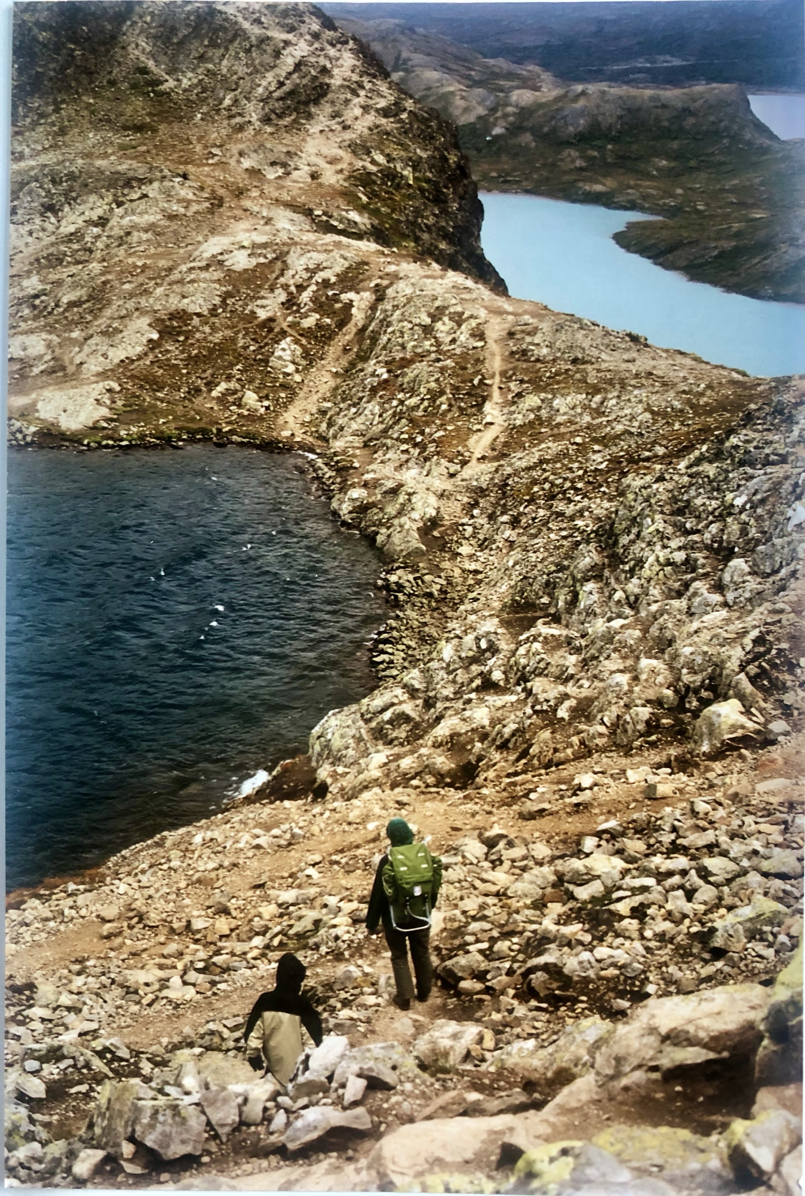The view just keeps getting better as you get higher, as do the colors of the two lakes, deep blue – and greenish milky-matte. The last one gets its tint because of glacier runoff. On a more sunny day, the green tone is even clearer than on the picture below: